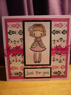 I've had to be quick in posting this - going out and im late, the glue hasnt even had time to dry! This is an entry for the I love Promarkers challenge #1. We had to follow a sketch and use the colours pink and brown. Here's my entry: